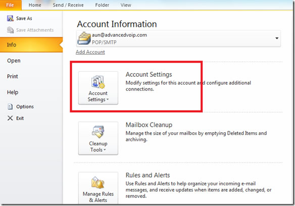 Step 1: If you have already opened Outlook, click on the File menu at the top of the page and then select Account Settings. If you have opened outlook for the first time jump to step 3.